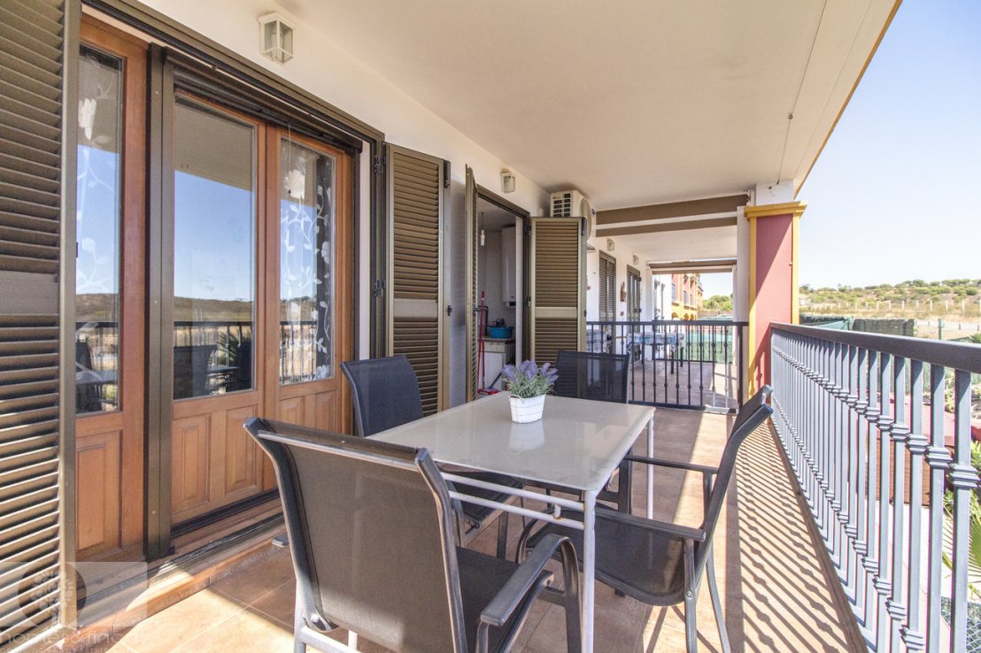 This welcoming apartment is located in the sought-after Las Encinas urbanisation in Costa Esuri, Ayamonte. Situated on the first floor, it offers a practical layout with 2 bedrooms, 2 bathrooms, a fully equipped kitchen, a laundry area, and a spacious living room opening onto a private balcony, perfect for enjoying the outdoors.