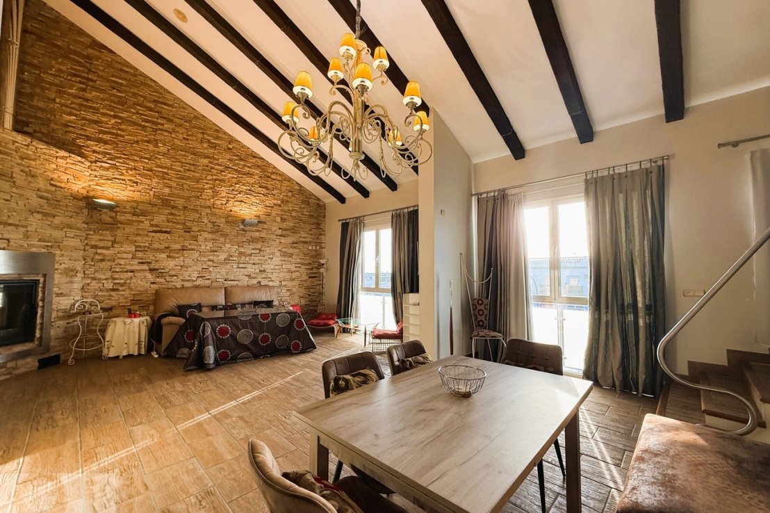 This beautiful renovated duplex in Lepe combines charm, space and comfort. With approximately 155 m² built, the property stands out for its high ceilings with exposed wooden beams and large windows that allow abundant natural light throughout the day.