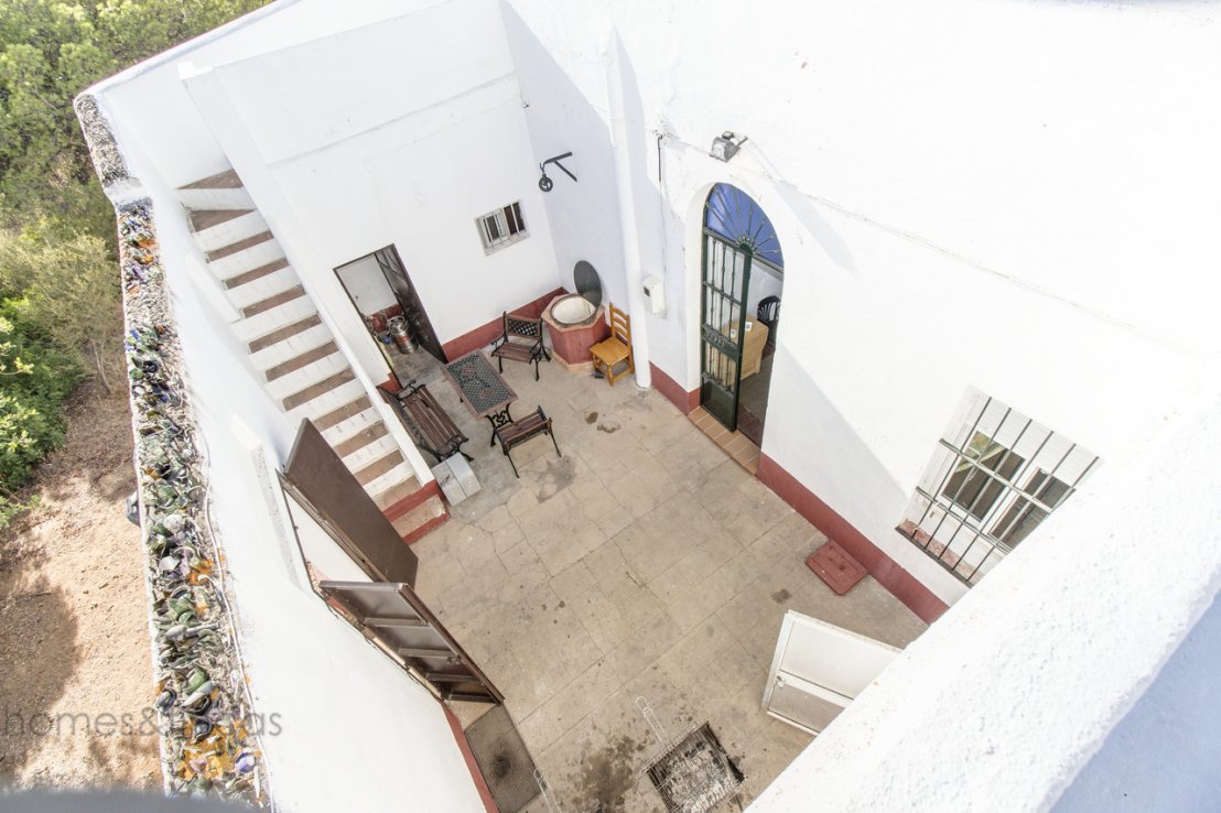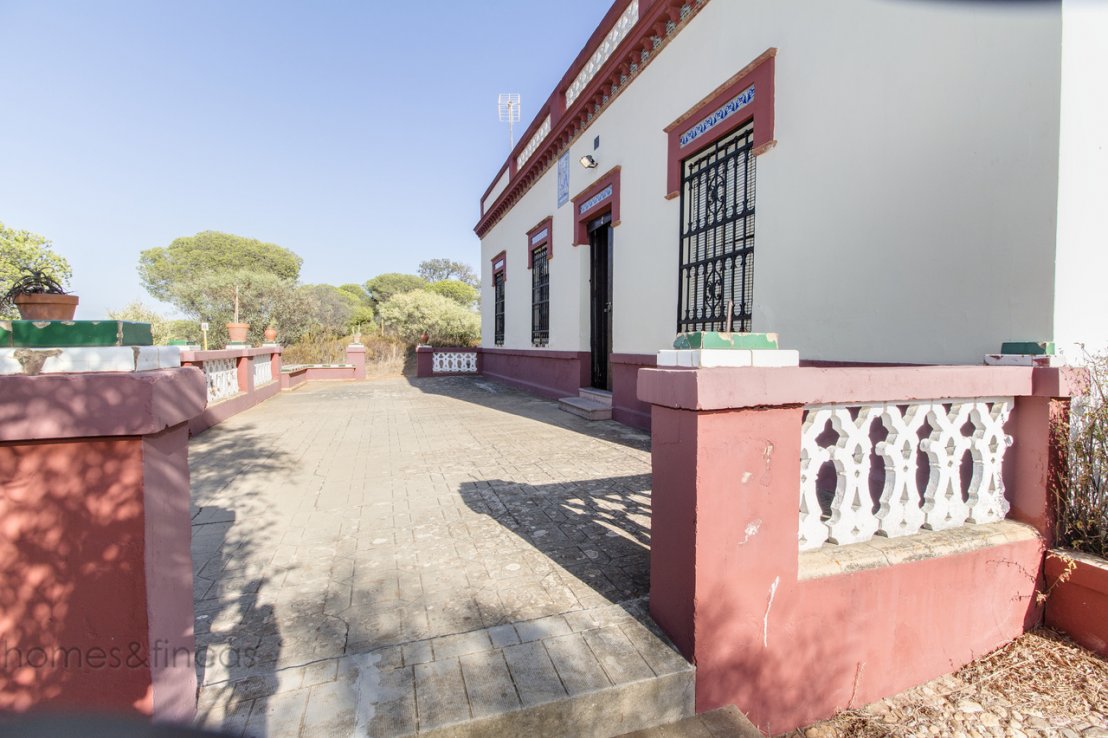 Finca for sale in Spain Finca in Ayamonte / Prov. Huelva / Com. Andalucia.Country house with approx. 200 m2 constructed surface. Large plot about 1.7 ha (17000 m2). Fully furnished. 5 bedrooms with large wardrobes. 1 bathroom. Living room with fire place and dining area. Fully fitted kitchen. Laundry and store room. Several terraces with about 60 m2. Patio approx. 40 m2. Front porch. Large roof terrace of about 200 m2. Garage about 30 m2. Connections for electricity and water by a deposit tank.