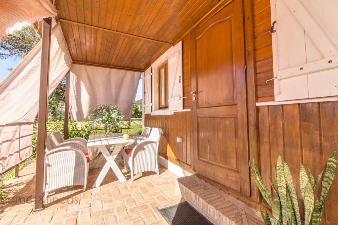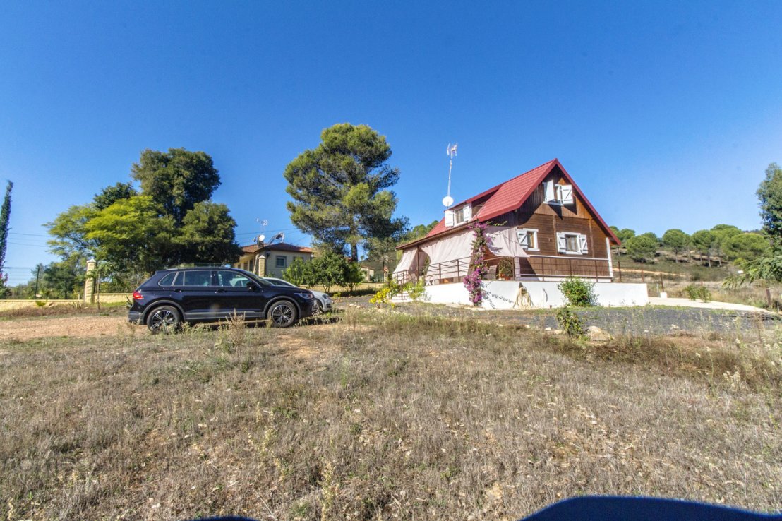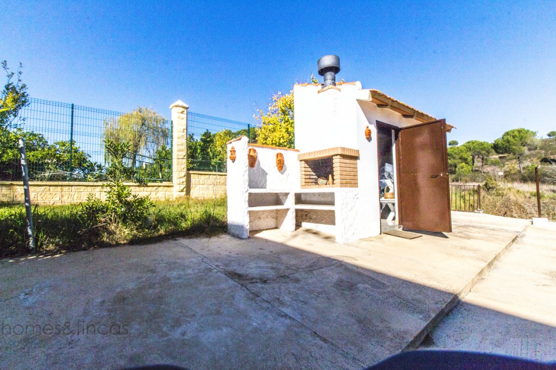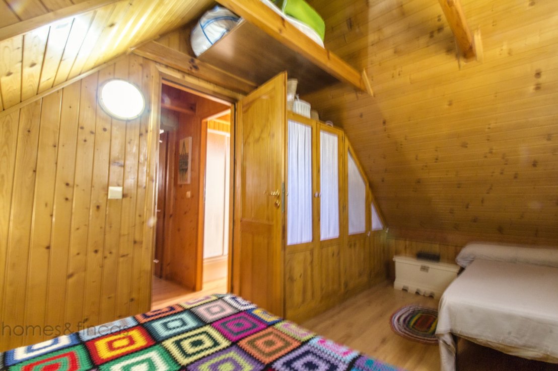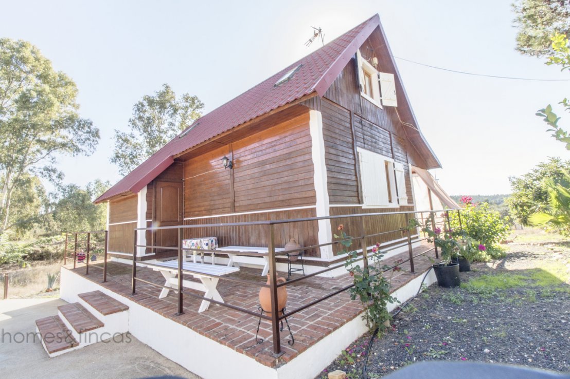 Tharsis - Finca for Sale in Spain. Finca in Tharsis / Prov. Huelva. Urbanisation "Huerta Grande". Charming wood panelled 2-story house with approx. 100 m2 constructed surface. Large plot of about 2.500m2, one part fenced-in and with some fruit trees. Partially furnished. 2 bedrooms with built-in wardrobes. 2 bathrooms. Living room with dining area. Fully fitted kitchen. Utility room. 2 covered terraces with together approx. 50 m2, facing south. Seperate out-door store room with adjacent BBQ. Electricity and water supply connected. Possibility to build a pool on the plot. Good location, only 35 km to the town of Huelva.