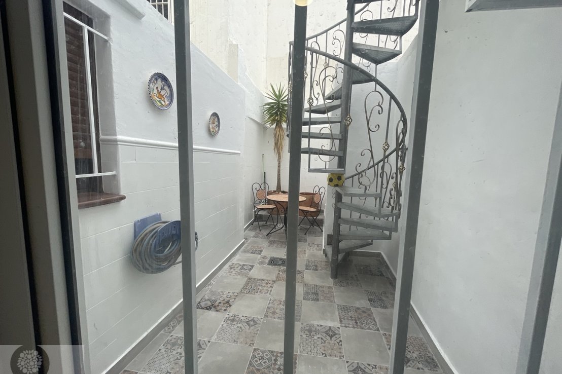 The lovely patio offers a peaceful outdoor area, leading to stairs that take you up to the rooftop terrace, where you can enjoy breathtaking views over the town.