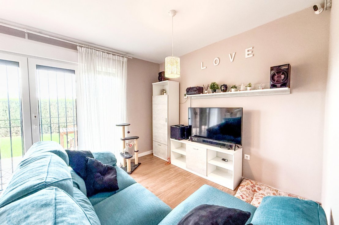 The ground floor features a spacious and bright living room with direct access to a terrace, ideal for outdoor dining, relaxing or hosting family and friends. The kitchen is practical and well laid out. There is also a bathroom on this floor, offering extra convenience.