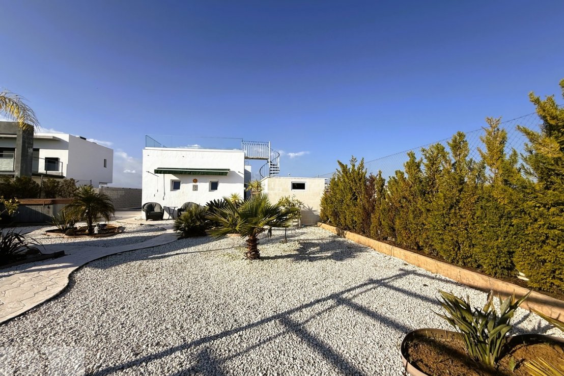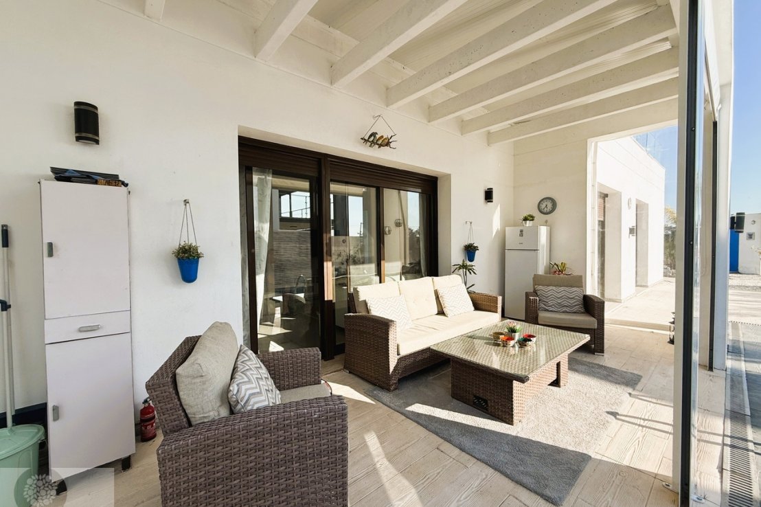 This beautiful single-storey villa is located in one of the highest areas of Costa Esuri, offering privacy and comfort in a peaceful environment. With approximately 126 m² of built area, the property sits on a generous plot of around 1,000 m², partly paved and designed for low maintenance.